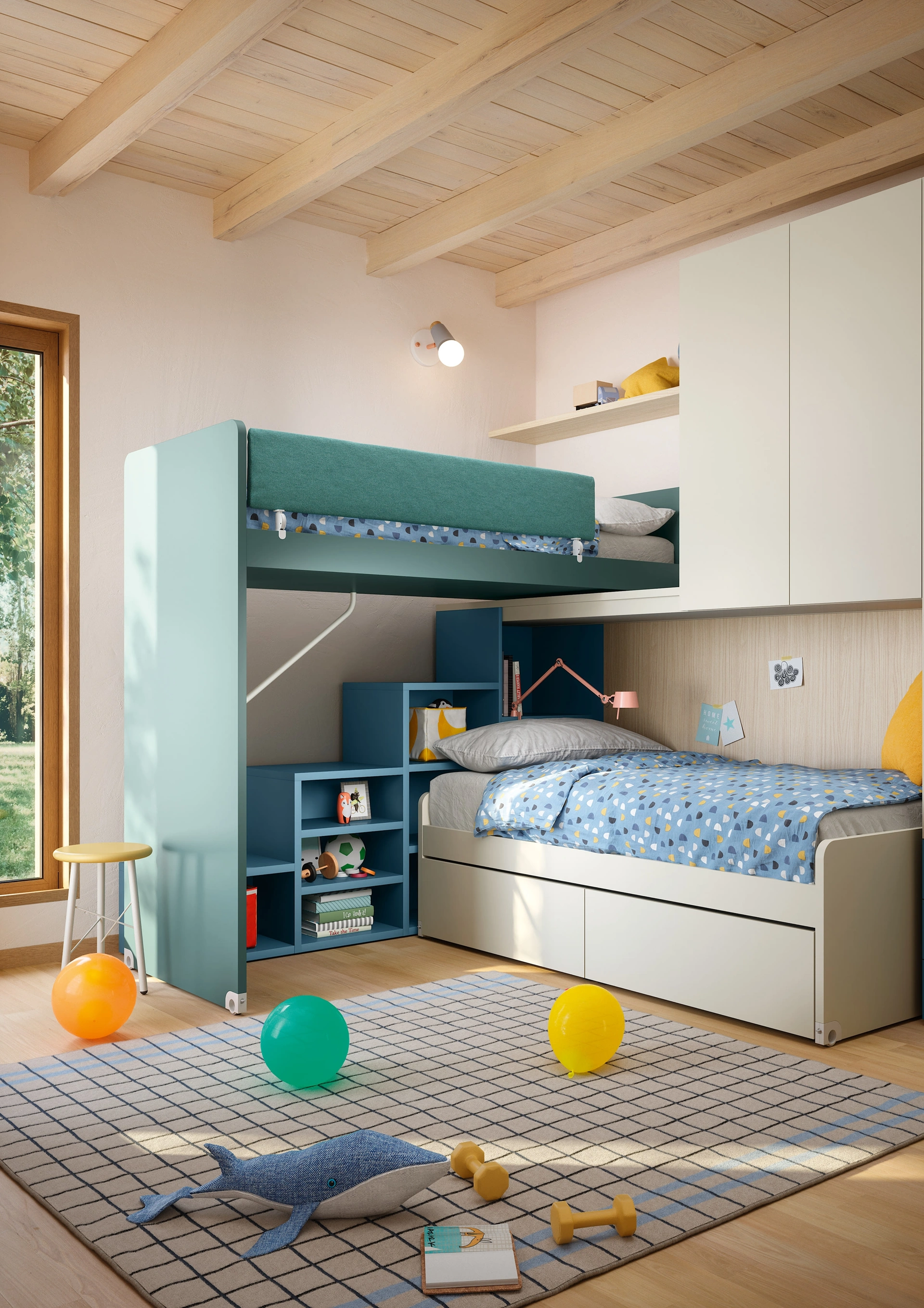 Cromie di tendenza e soluzioni progettuali ad hoc caratterizzano le più esclusive proposte del noto e conosciuto marchio che presentiamo in negozio. Nidi asseconda il gusto dei bambini e le richieste dei genitori con le sue Camerette moderne a soppalco, ideali per esigenze di ogni tipo. La Cameretta Soppalco Scorrevole Slide di Nidi in melaminico è un universo articolato da decorare con attenzione, mixando molteplici elementi accessori su misura. Con una composizione arredativa Nidi, potrai completare con funzionalità e design l'ambiente in cui i tuoi figli trascorrono gli anni importanti della vita.